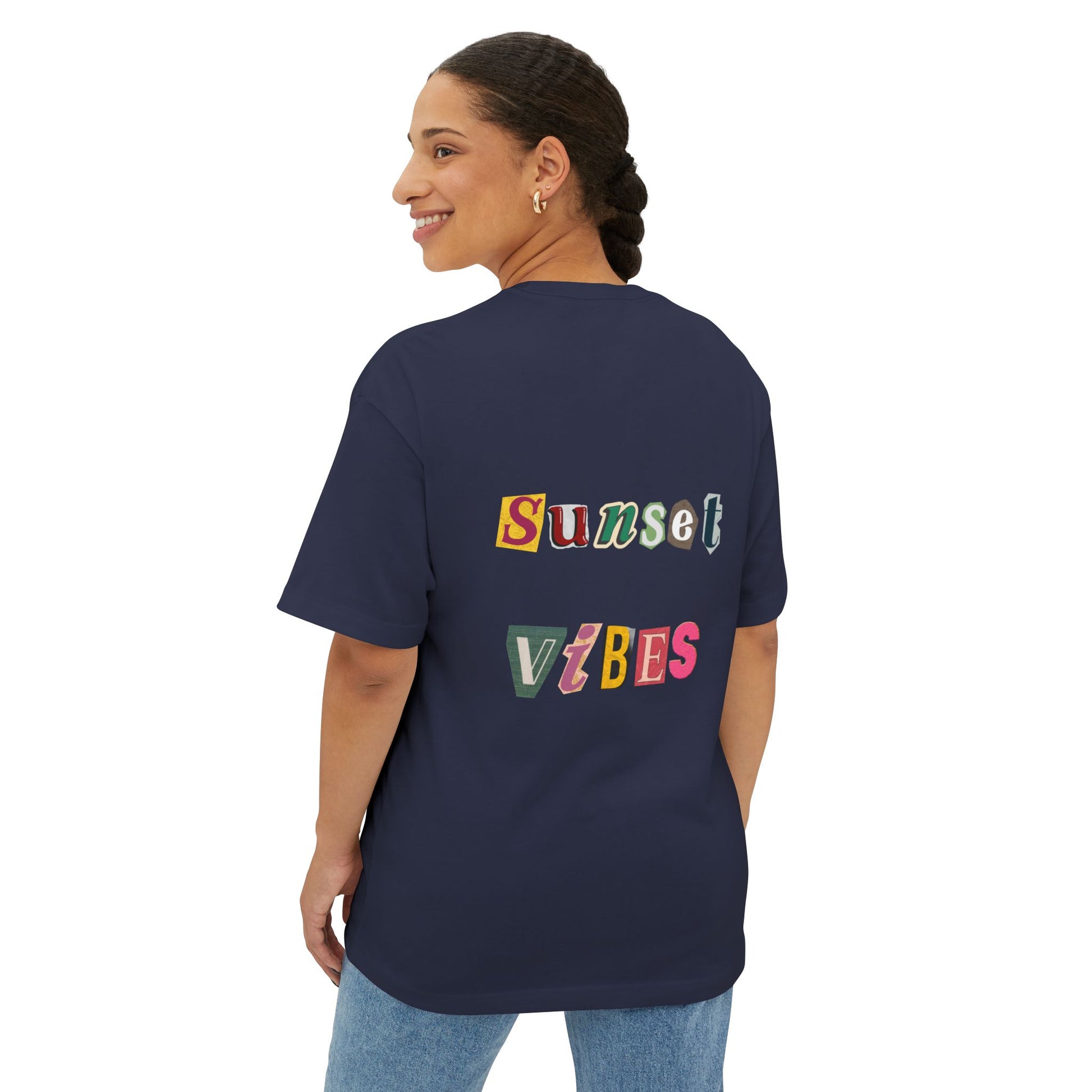 Embrace the laid-back aesthetic with this Unisex Oversized Boxy Tee, perfect for elevating your casual wardrobe. Featuring a fun and colorful 'Sunset Vibes' design, this tee radiates positivity and warmth, making it an ideal companion for sunny outings or relaxed evenings with friends. Its oversized fit invites comfort, allowing for easy pairing with jeans, shorts, or even loungewear for a cozy day in. This tee is relevant for anyone who loves to express their vibrant personality and enjoy a casual yet stylish look. Great for summer gatherings, beach days, or just lounging at home, it makes for a thoughtful gift for friends on occasions like birthdays, graduations, or any celebration of friendship and good vibes.